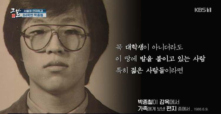 그러던 와중에 남영동 대공 분실에 박종철 군이 끌려오게 된다. 박종철 학생은 서울대학교 언어학과 84학번으로 과 대표 학생회장을 맡았고 많은 집회와 시위에 참여해서 징역과 구류를 살기도 했던 1980년대 운동권 학생이었다.