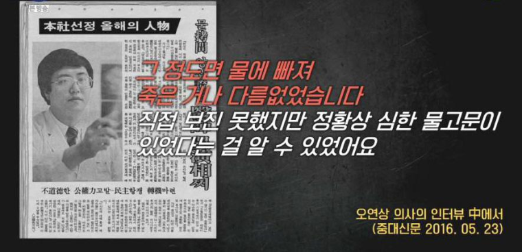 "일부 수사관들의 지나친 직무 의욕으로 인해 발생한 불상사..."라고 발표하면서 개인의 잘못으로 돌린다. 그래서 처음으로 두 명의 고문 경찰이 구속된다.
